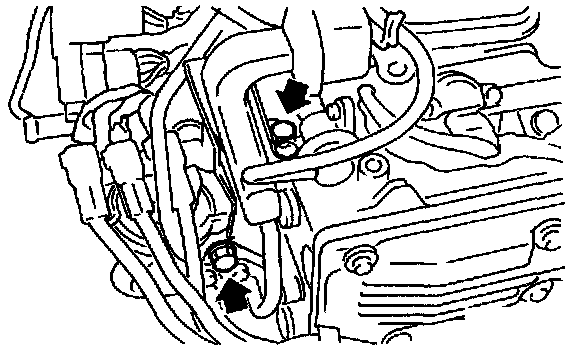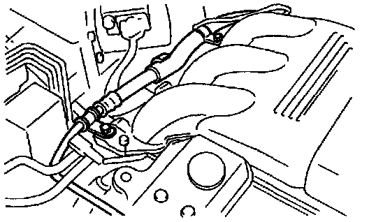 6) Remove bolts which install power steering hose bracket to engine, and position the hose away from engine.