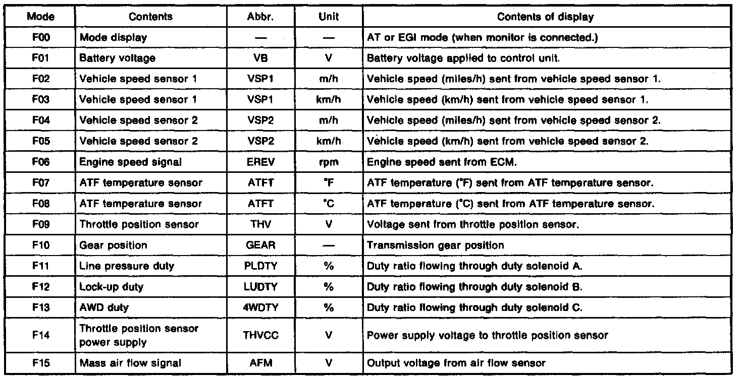 Subaru Select Monitor Code Descriptions