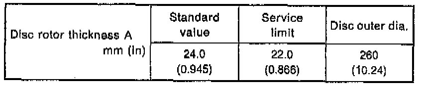 Disc rotor runout limit: 0.075 mm (0.0030 inch)