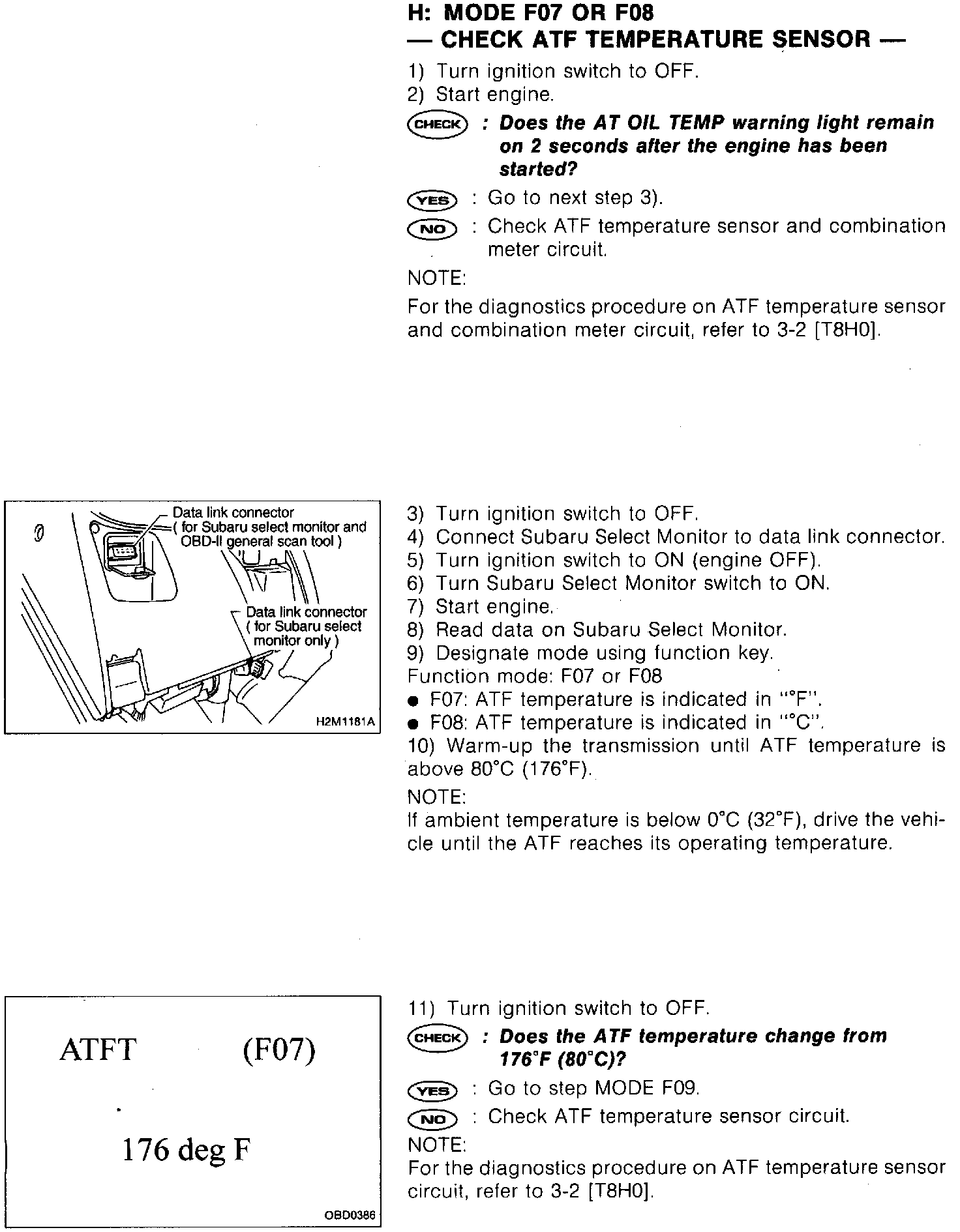 Mode F07 or F08 - Check ATF Temperature Sensor