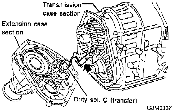 b. While pulling the extension slightly, disconnect the connector for the duty solenoid C (transfer).