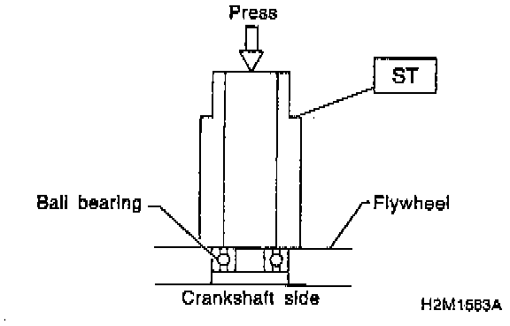 (1) Drive out ball bearing from flywheel.