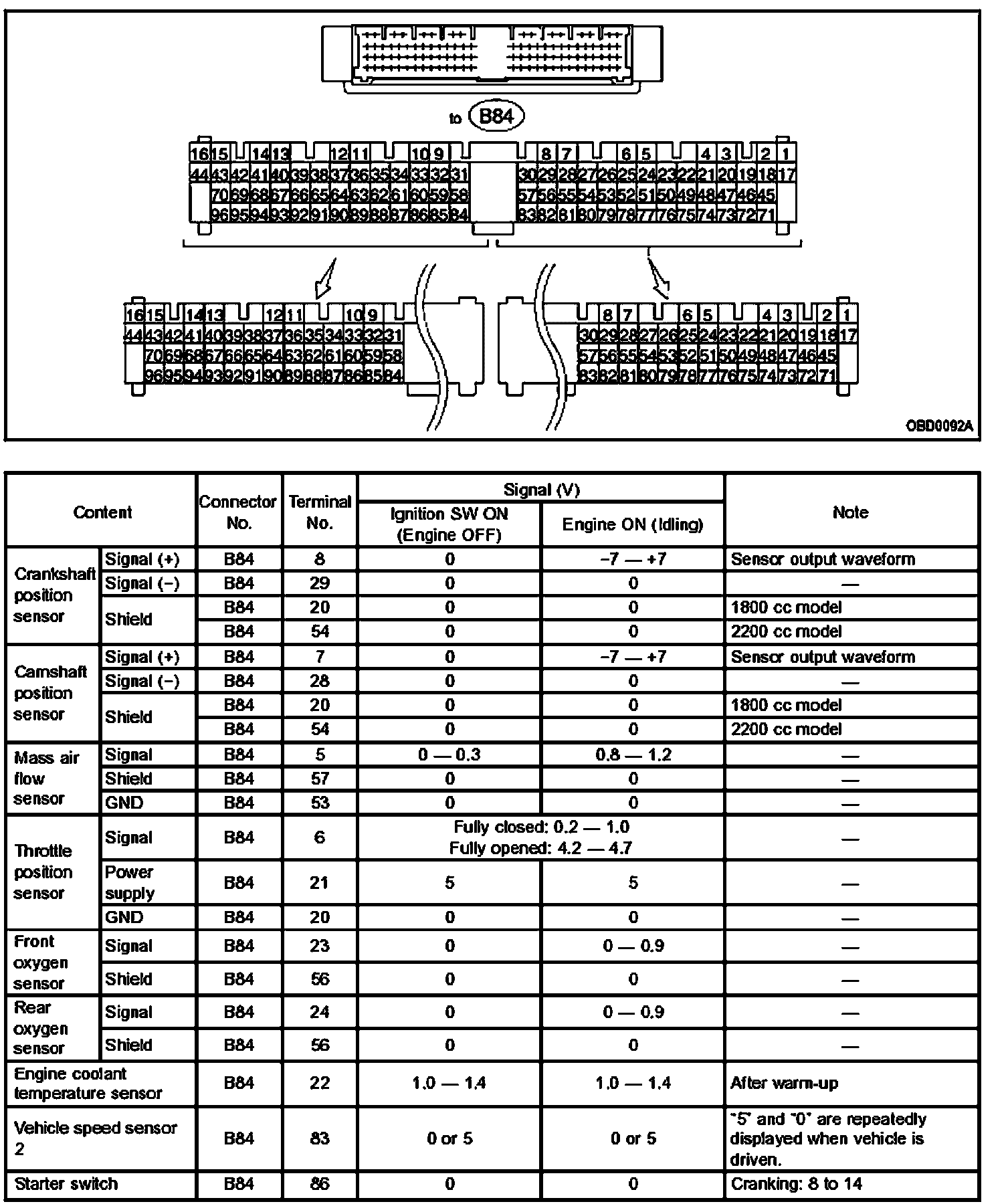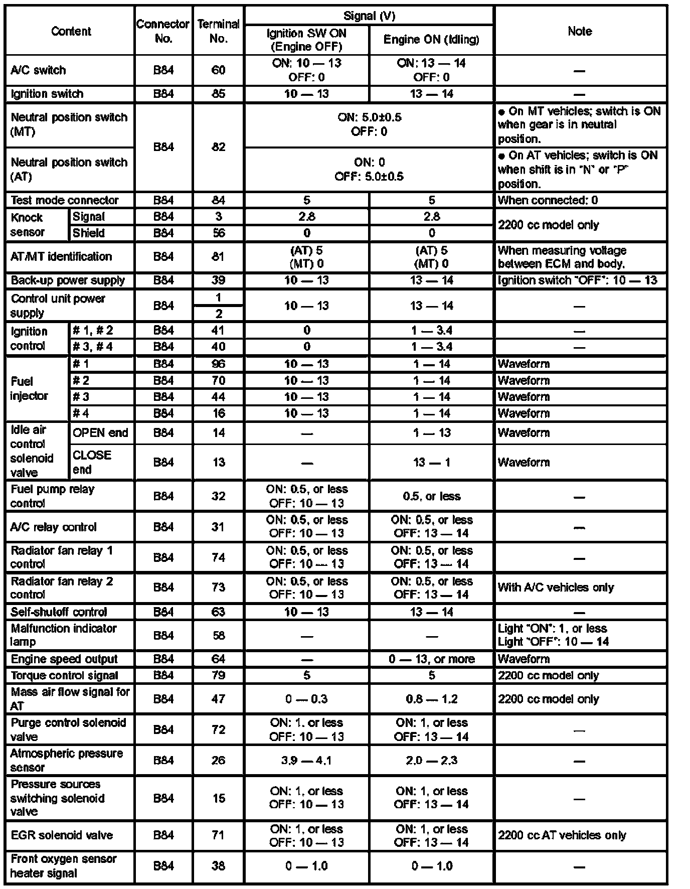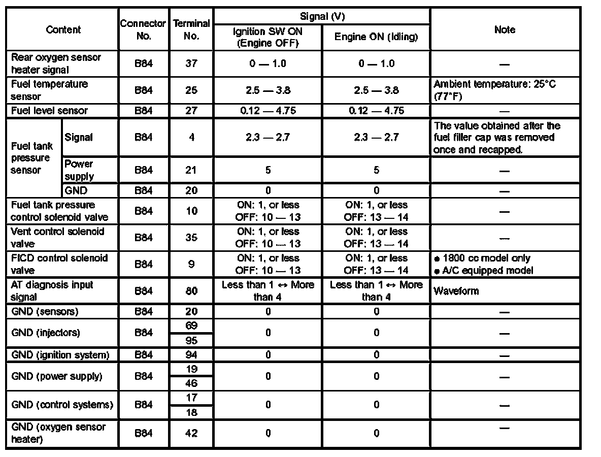 Pinout Values and Diagnostic Parameters