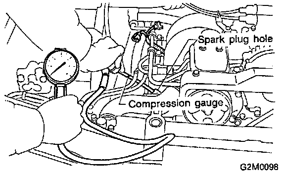 CAUTION: When using a screw-in type compression gauge, the screw (put into cylinder head spark plug hole) should be less than 18 mm (0.71 inch) long.