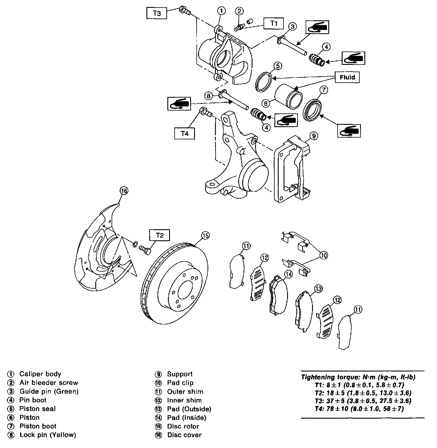 1) Clean mud and foreign particles from caliper body assembly and support.