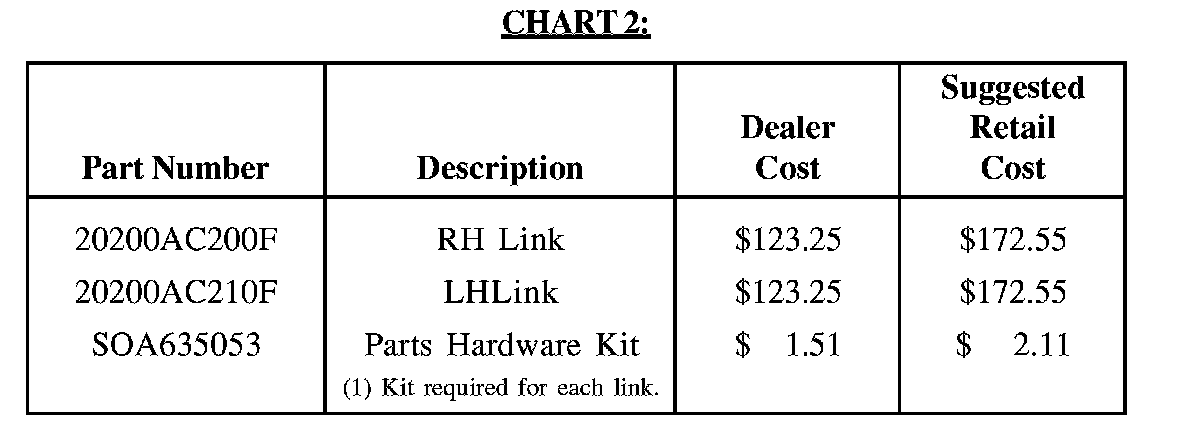 Vehicles with potentially defective transverse links are identified in Chart 1: