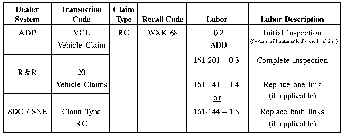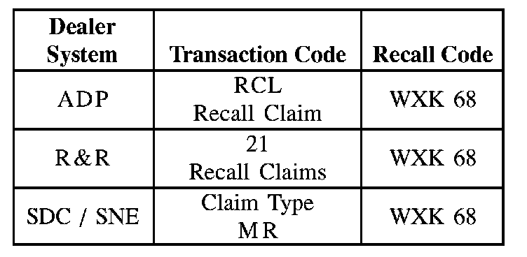 Credit to perform the WXK-68 Recall Campaign will be based on the submission of properly completed repair order information. Dealers may enter the applicable claim information through their Dealer Communications System (DCS).
