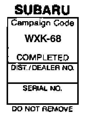 Each vehicle corrected in accordance with the instructions outlined in this bulletin will require a "Recall Campaign" completion label. Each label provides a space to include the dealer code performing the service program. The information may be inserted with a typewriter or permanent ink pen and placed on the upper radiator cowl.