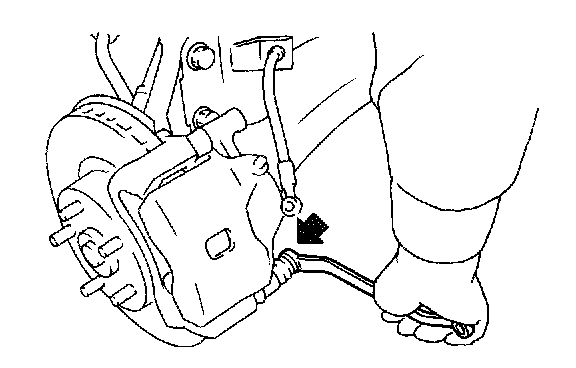 ^ A wear indicator is provided on the inner disc brake pad. If the pad wears down to such an extent that the end of the wear indicator contacts the disc rotor, a squeaking sound is produced as the wheel rotates. If this sound is heard, replace the pad.