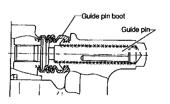 7. Apply a coat of specified grease to guide pin, outer surface, sleeve outer surface, cylinder inner surface, and boot grooves.