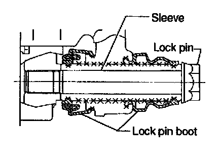 5. Remove lock pin sleeve and boot from caliper body.