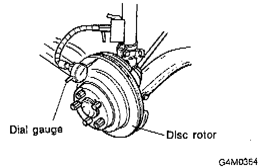 2. Set a dial gauge on the disc rotor. Turn disc rotor to check runout.