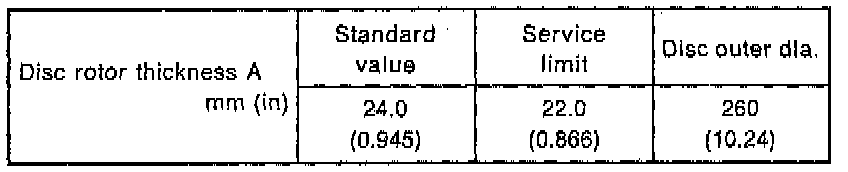 Disc rotor runout limit: 0.075 mm (0.0030 inch)