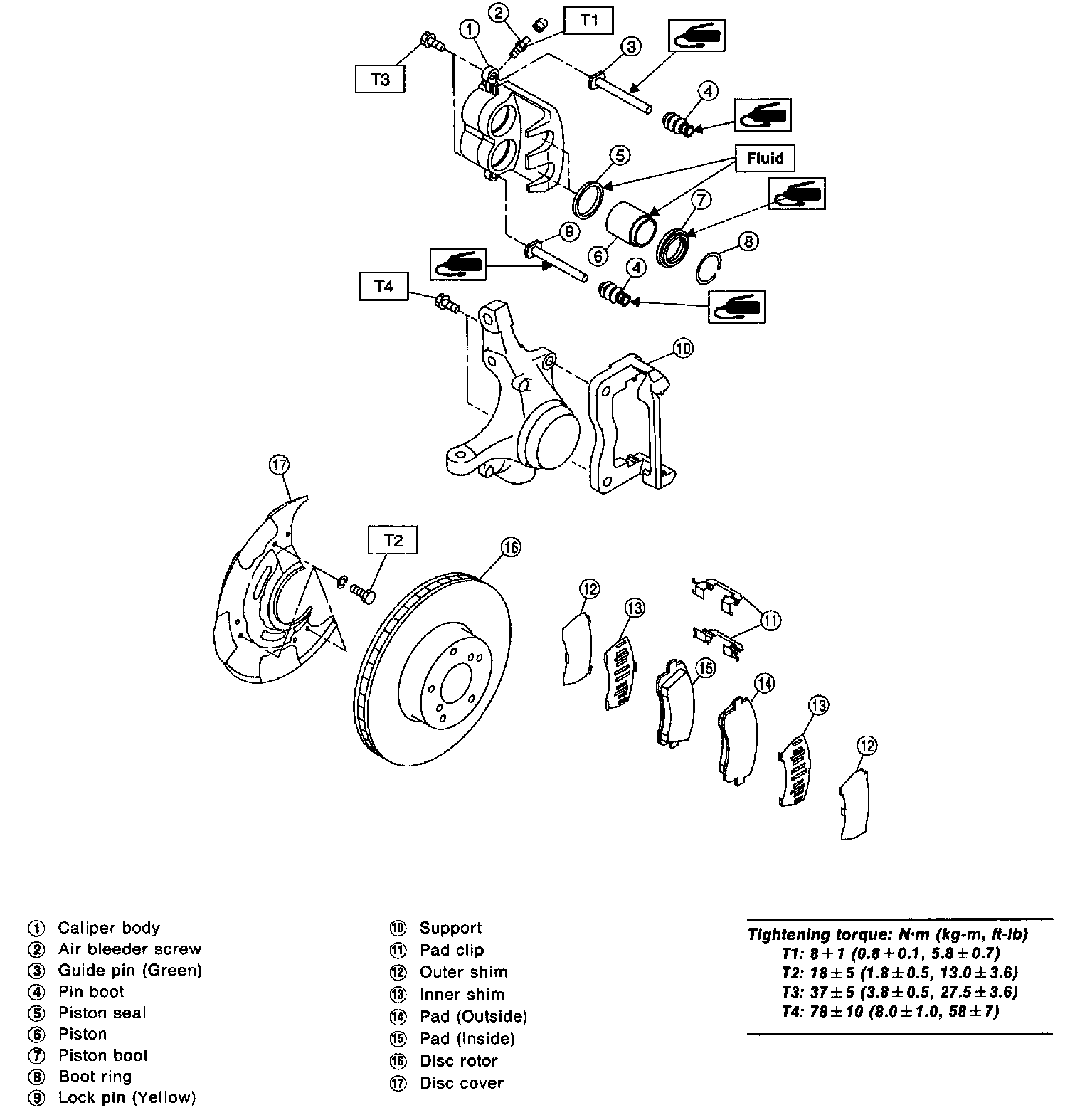 1) Clean mud and foreign particles from caliper body assembly and support.