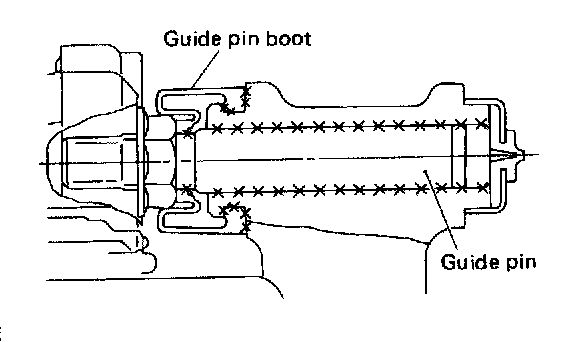 7) Apply a coat of specified grease to guide pin, outer surface, sleeve outer surface, cylinder inner surface, and boot grooves.