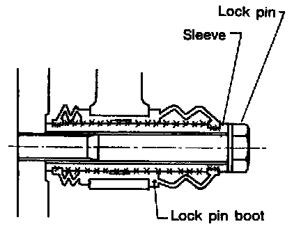 9) Install lock pin boot on caliper body and insert lock pin sleeve into place.