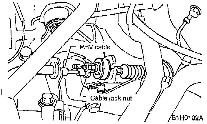 NOTE: Whenever turning adjusting nut, prevent PHV cable from revolving as shown in Figure.