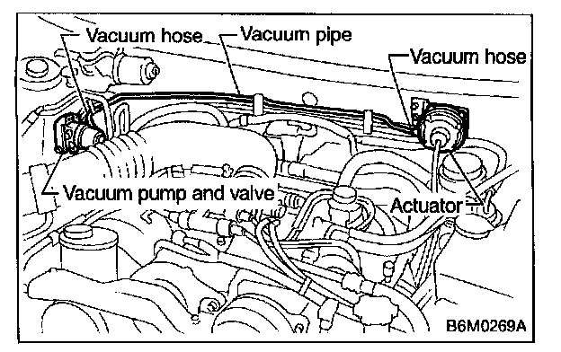 Check vacuum hose and pipe (which connects actuator and vacuum pump) for disconnection or cracks.