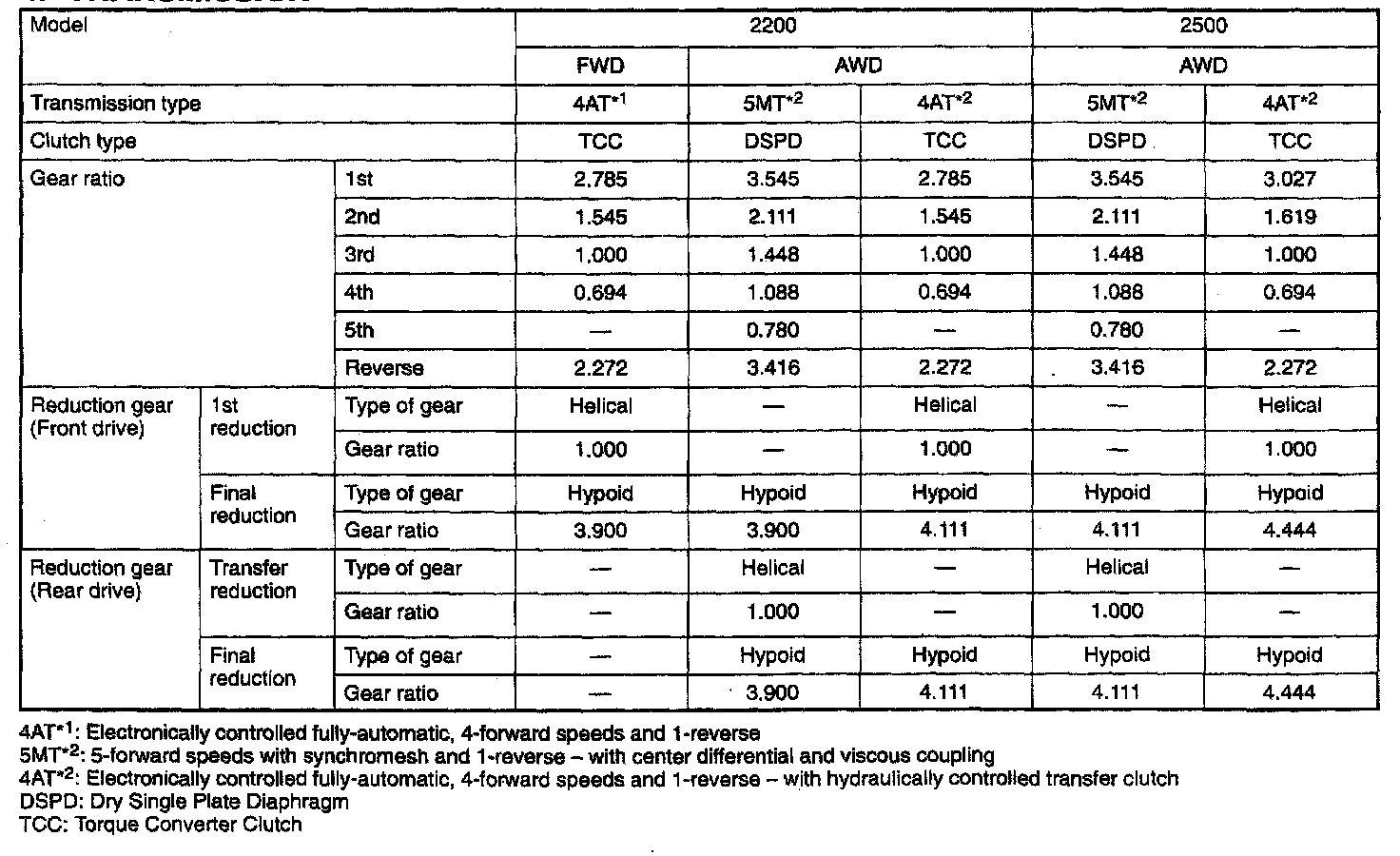 5-spd M/T/4-spd A/T, Transmission Gear Ratios (Station Wagon):