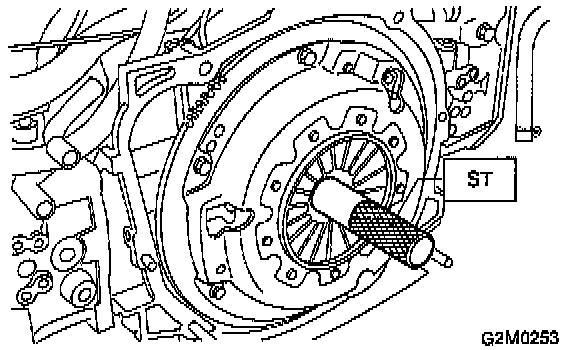 3. Insert ST into the clutch disc and install them on the flywheel by inserting the ST end into the pilot bearing.