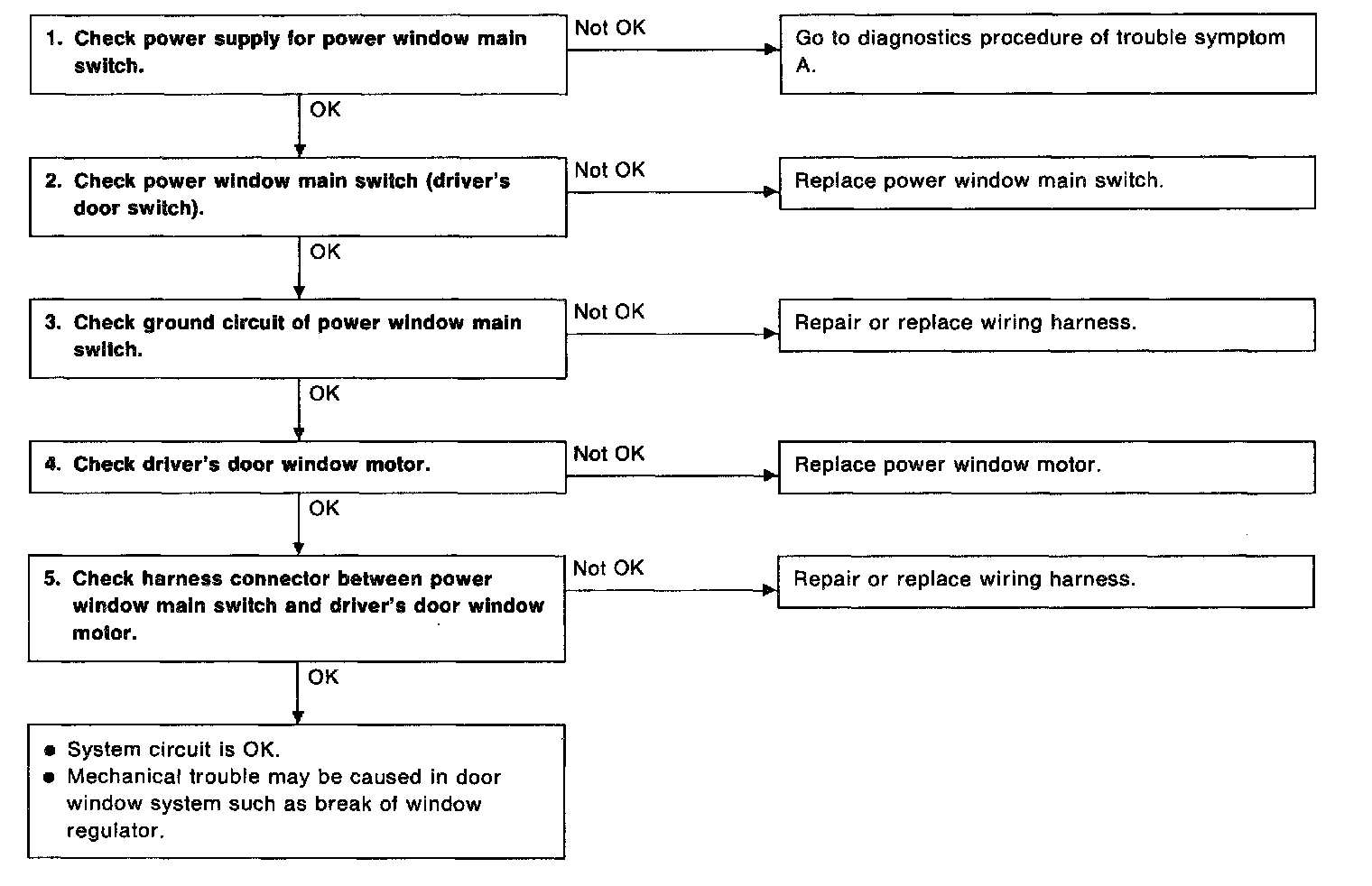 5. CHECK HARNESS CONNECTOR BETWEEN POWER WINDOW MAIN SWITCH AND DRIVER'S DOOR WINDOW MOTOR.