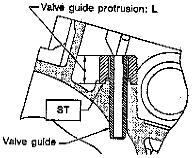 6. Check the valve guide protrusion. Valve guide protrusion: L should be 17.5 - 18.0 mm (0.689 - 0.709 inch).