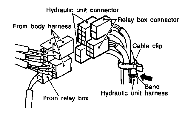 3) Using cable clip, secure hydraulic unit harness to relay box harness.