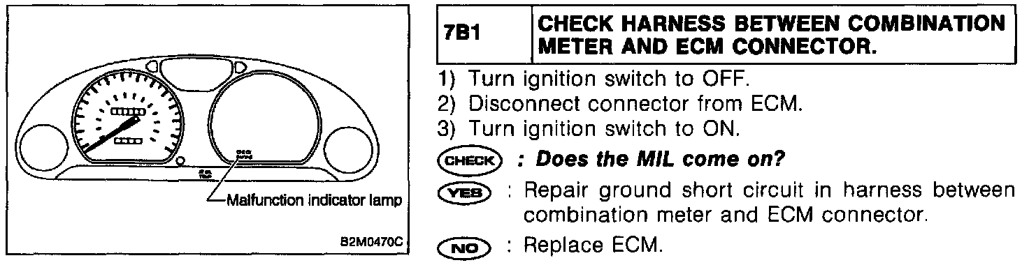- The CHECK ENGINE malfunction indicator lamp (MIL) circuit is shorted.