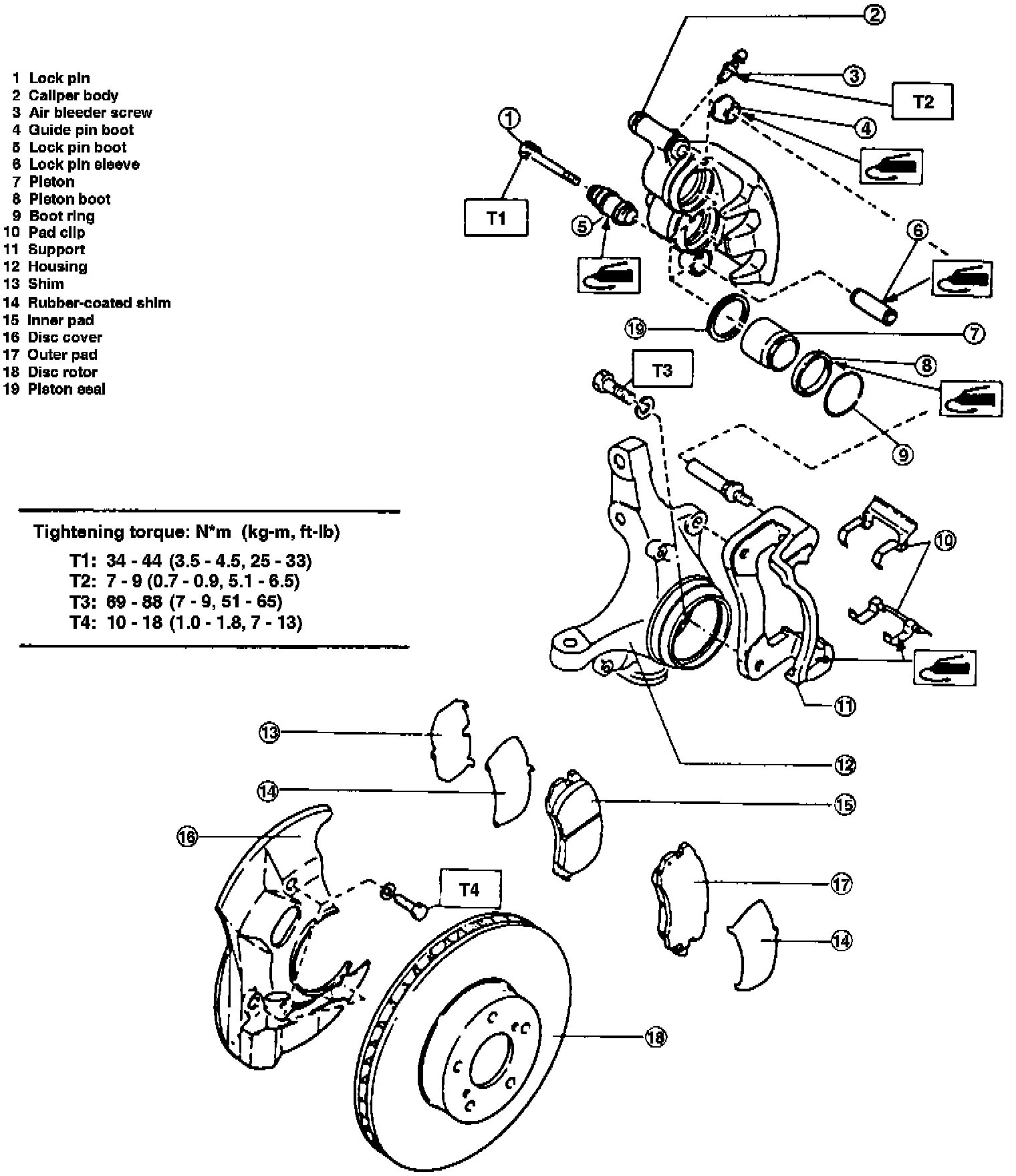 c. After completing installation, depress brake pedal several times to seat brake pads against rotor. If pedal stroke is excessive, bleed hydraulic system as needed.