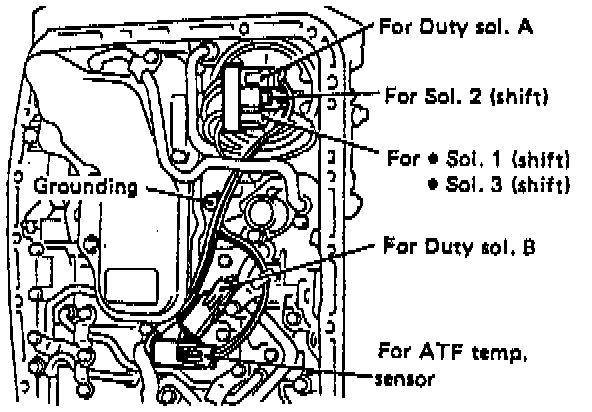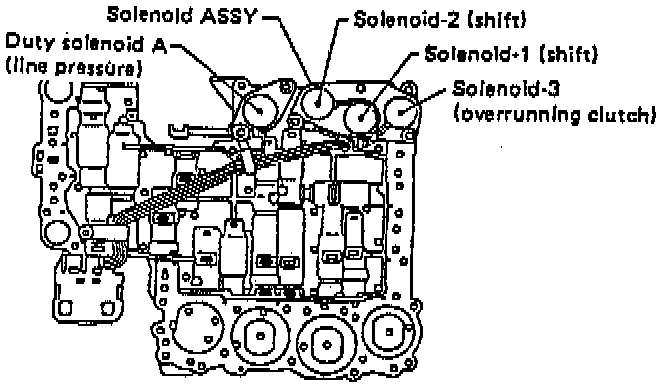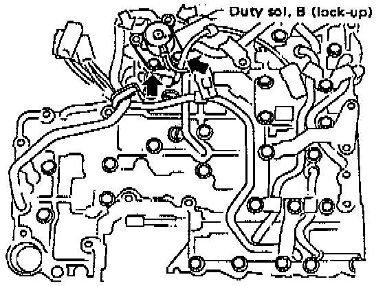 7. Remove shift solenoids 1, 2 and 3, and duty solenoid A.