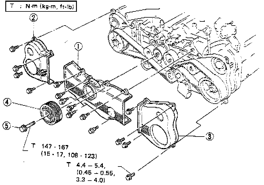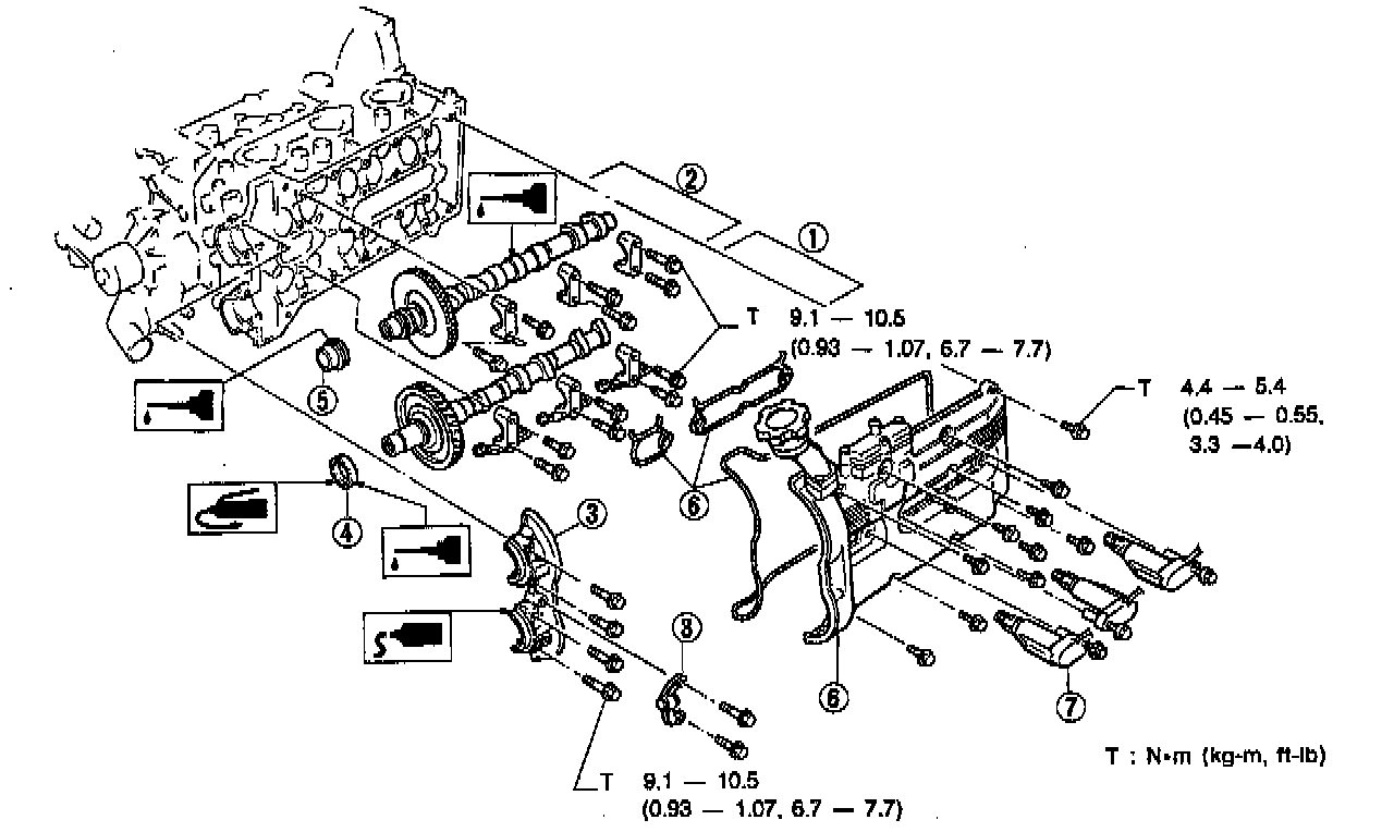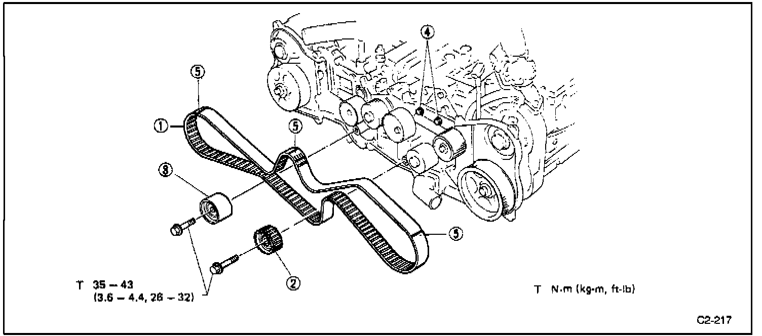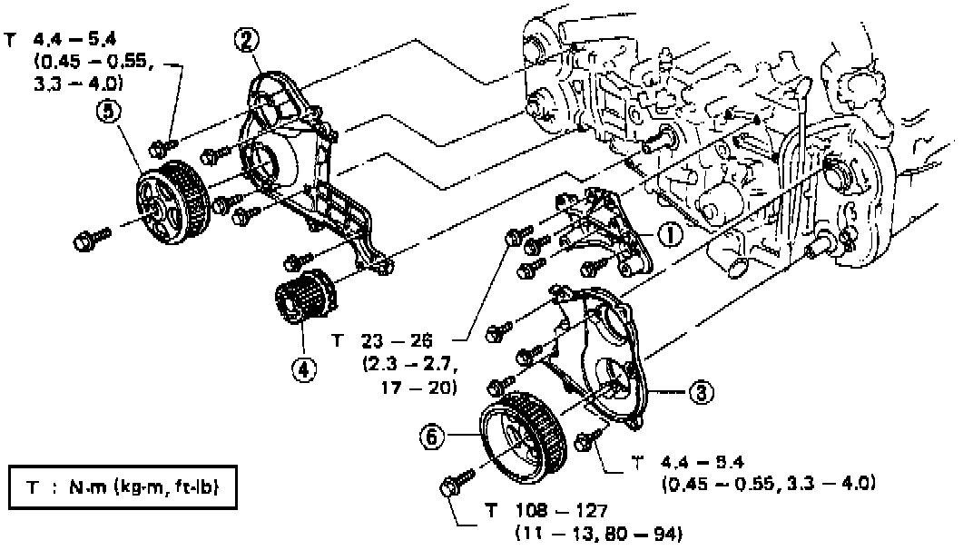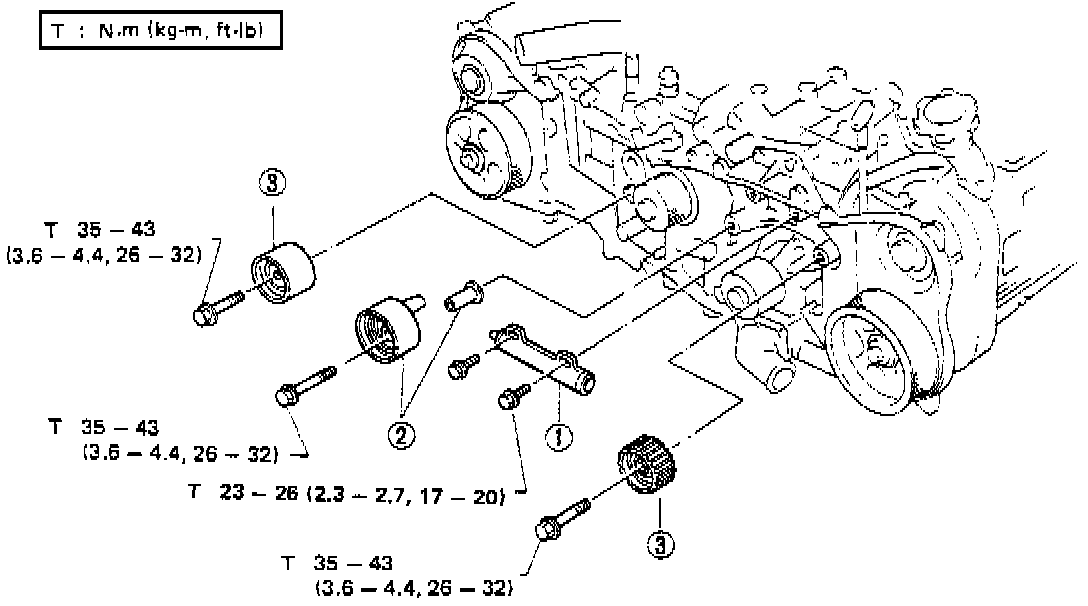 6. Re-tighten bolts (5), (6), (7) and (8) to 44 N.m (4.5 kg-m, 33 ft-lb)