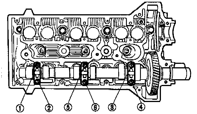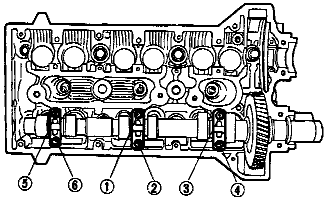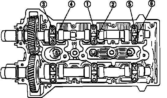 Fig. 45 Exhaust Camshaft Removal Sequence: