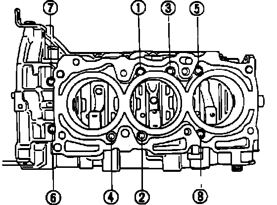 2. Then tighten all bolts to 69 N.m (7.0 kg-m, 51 ft-lb) in numerical order.