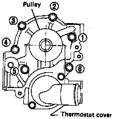 1. Tighten all bolts to 29 N.m (3.0 kg-m, 22 ft-lb) in numerical order.