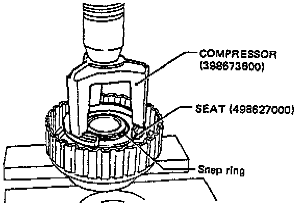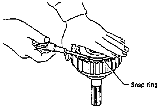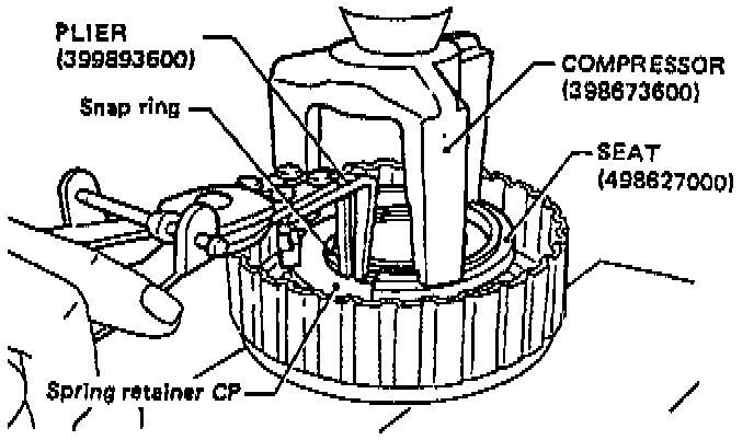 2. Check the snap ring for wear, return spring for permanent set and breakage, and spring retainer for deformation.