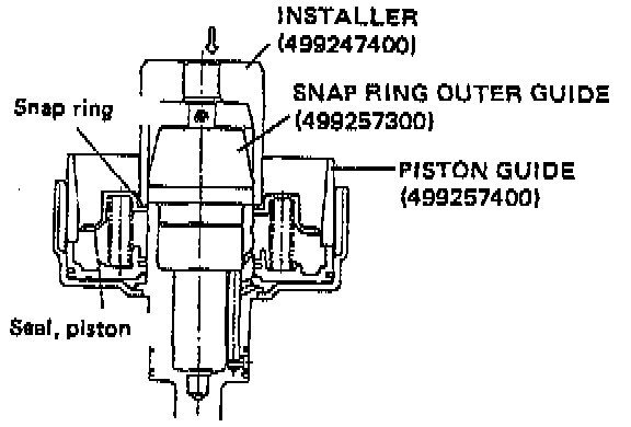 (3) Using SPECIAL TOOL, attach transfer piston seal to transfer piston seal guide.