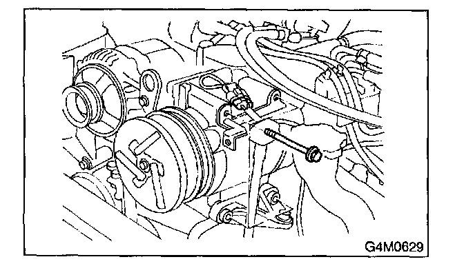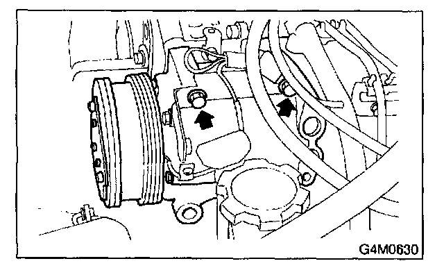 1. Remove bolts which secure compressor.