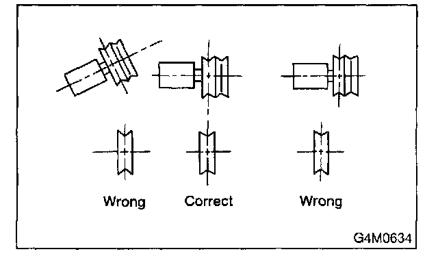 6. Check drive belt tension and adjust it if necessary by changing alternator position and/or idler pulley position.