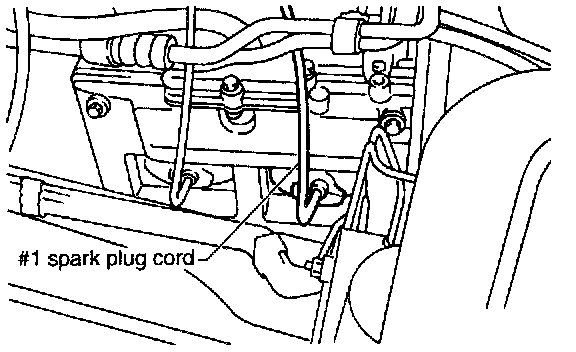 6) Remove #1 spark plug cord by pulling boot, not cord itself.