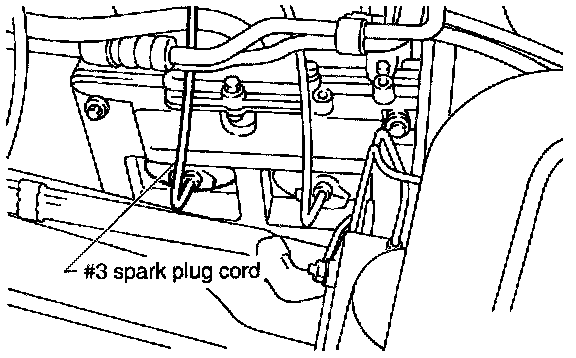 6) Remove #3 spark plug cord by pulling boot, not cord itself.