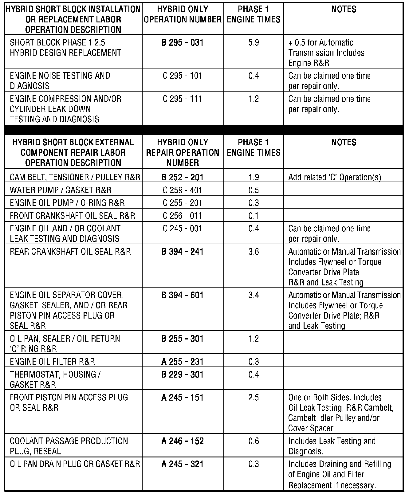 Repairs may be performed under warranty for manufacturing defects relating to the listed external component parts of the hybrid short block. These items include: