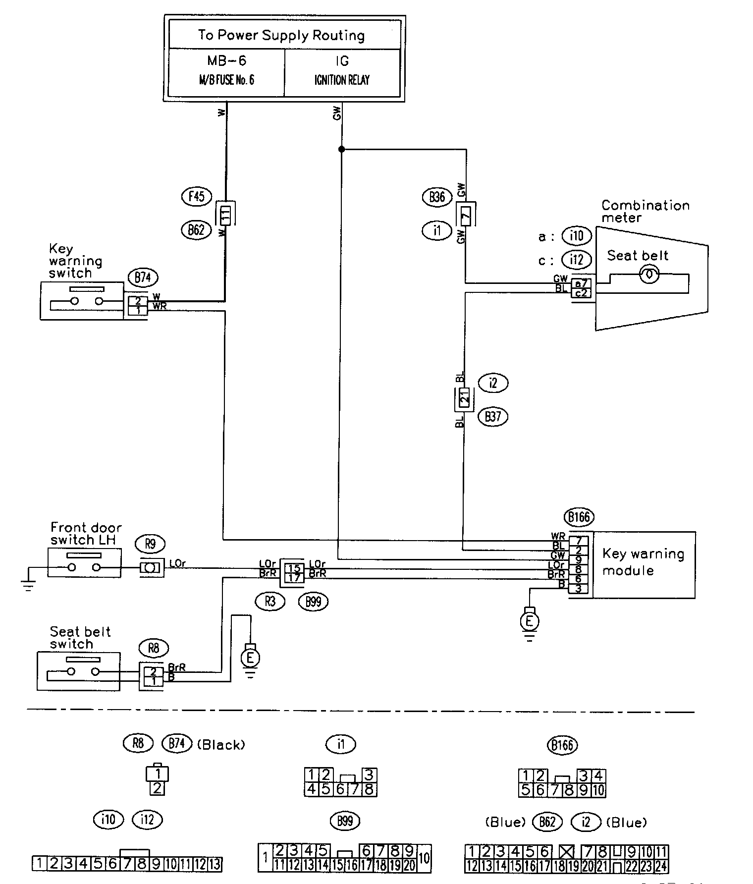 Seat Belt Warning and Key Warning System Wiring Diagram: