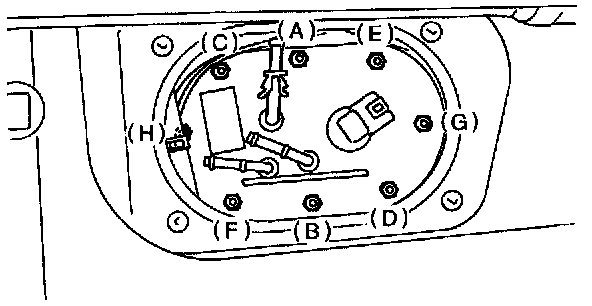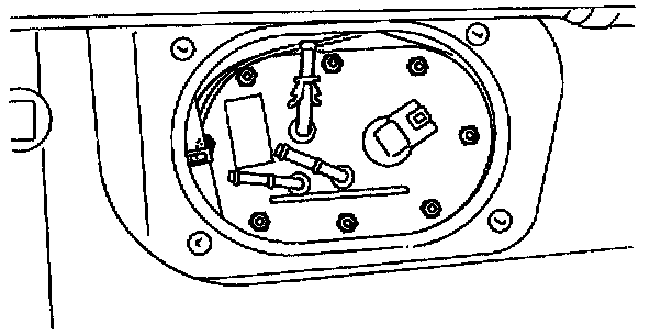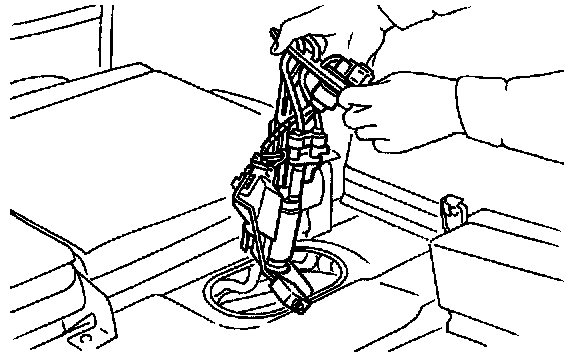 7) Remove nuts which install fuel pump assembly onto fuel tank.