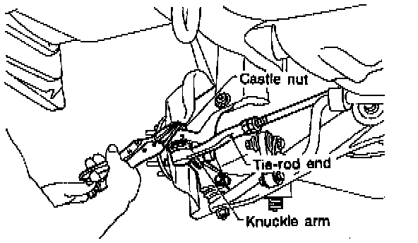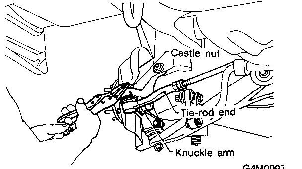 5. Using a puller, remove tie-rod end from knuckle arm after pulling off cotter pin and removing castle nut.