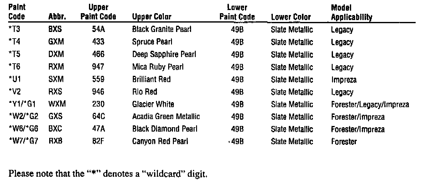 TWO-TONE PAINT CODE BREAKDOWN