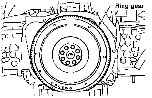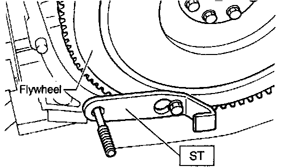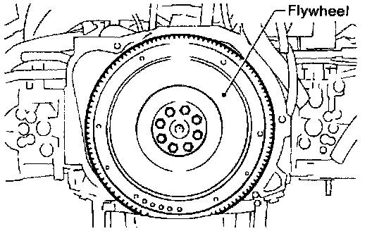 NOTE: Tighten flywheel installing bolts gradually. Each bolt should be tightened to the specified torque in a crisscross fashion.