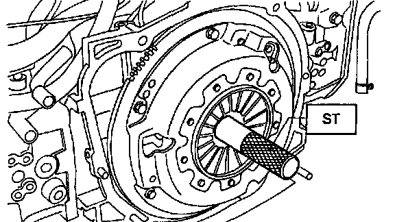 3. Insert ST into the clutch disc and install them on the flywheel by inserting the ST end into the pilot bearing.
