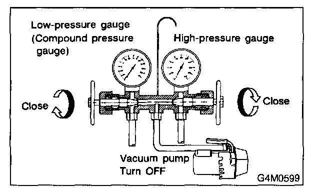 1. After 15 minutes (or more) of evacuation, close the high-pressure manifold valve.