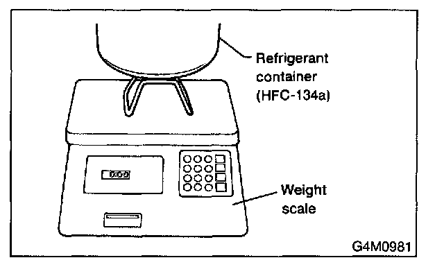 2. If bulk refrigerant [13.6 kg (30 lb) canister] is used, be certain to weigh the charge amount carefully, using the correct equipment, to avoid overcharging the system.