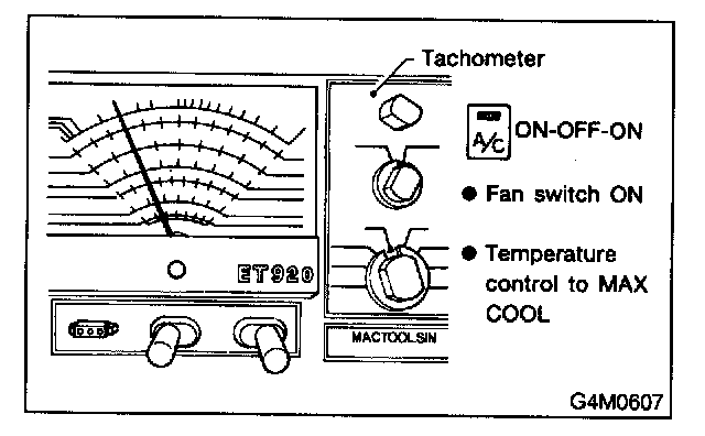 3. With the A/C switch off and the windows rolled down, start the engine and run at idle rpm.
